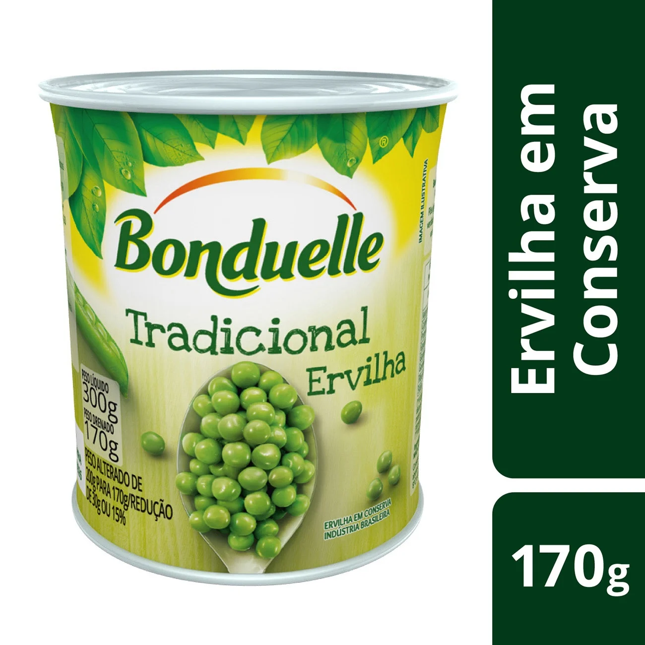 As Ervilhas em conserva Bonduelle são colhidas e envasadas ainda frescas, em até 8 horas, mantendo o sabor do vegetal.