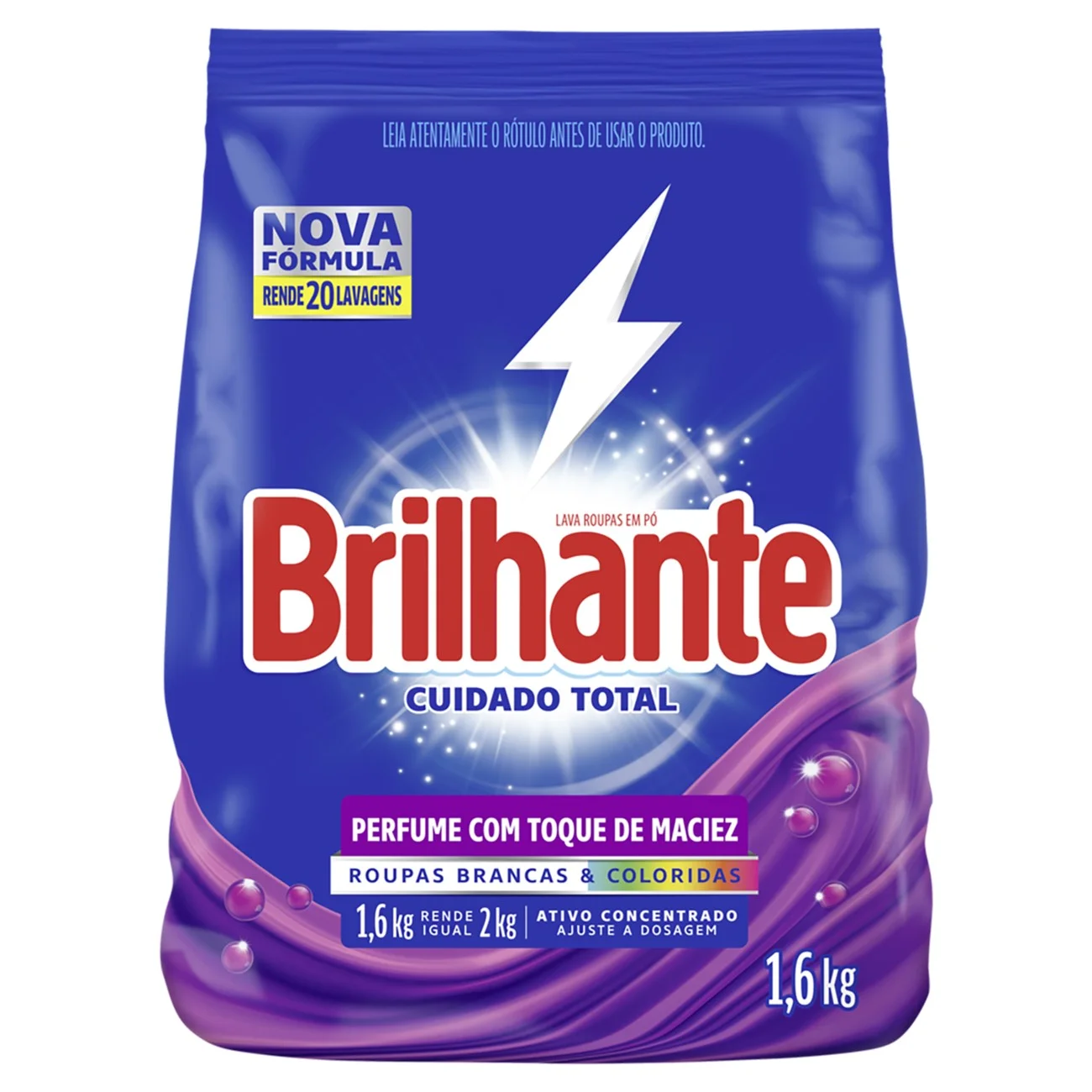 Kit c/ 08 und - Lava- Roupas em Pó Brilhante Roupas Brancas e Coloridas Cuidado Total Pacote 1.6kg quantidade