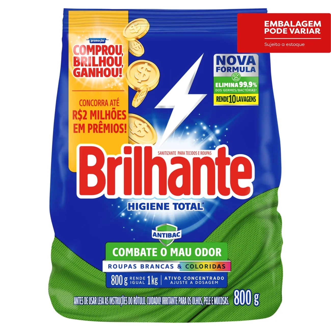 Kit c/ 16 und - Lava-Roupas em Pó Brilhante Roupas Brancas e Coloridas Higiene Total 800g quantidade